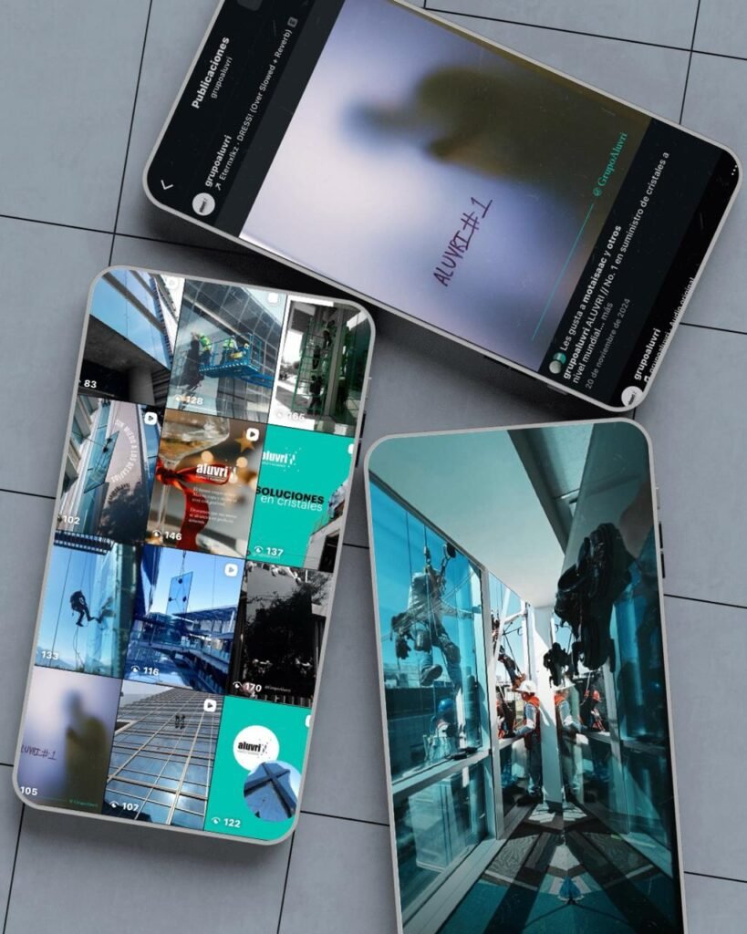 Desarrollo de imagen para redes sociales en Instagra, Facebook, LinkedIn, X y Youtube para empresa dedicada a soluciones integrales de vidrio y aluminio.
